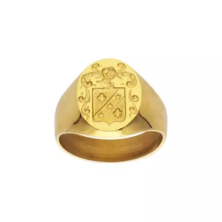 Nos chevalières pour hommes aux blasons génériques ont été dessinées en s’inspirant d’armoiries existantes, tout en étant très différentes. Les dessins gravés utilisent des motifs récurrents de la gravure héraldique sur ce type de bague : lune, soleil, étoile, croix, couronne, casque, lambrequin ou encore fleur de lys. Quant au plateau, il est de forme ovale, la plus demandée car la plus représentative des vraies chevalières armoriées. Seules les dimensions du plateau changent, à choisir en fonction du doigt sur lequel la chevalière sera portée, et en fonction de la corpulence de la personne.